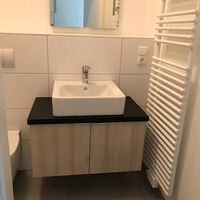 Die Wohnung ist mit pflegeleichtem Kunststoffboden in heller Holzoptik ausgestattet. Das hell geflieste Badezimmer verfügt über eine bodengleiche Dusche sowie einen Handtuchheizkörper.