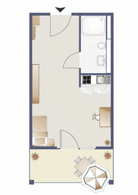Vermietet wird ein hochwertiges Studentenapartment mit Terrasse.